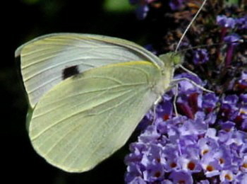 Großer Kohlweißling auf. Und sitzt dann wie die Tagpfauenaugen am Sommerflieder und labt sich.